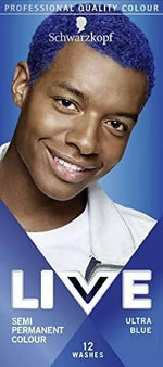 Schwarzkopf LIVE Ultra Blue is a semi-permanent hair dye designed for bold, expressive colour that lasts up to 12 washes. Ideal for pre-lightened or naturally light hair, this vibrant blue shade delivers intense shine and a head-turning finish. Perfect for users seeking temporary transformation without long-term commitment.
