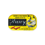 Anny Sardine In Spicy Oil - Anny Sardines in Spicy Oil are canned sardines flavored with chili peppers and preserved in a spicy oil, offering a rich and smoky taste. They are a good source of protein and omega-3 fatty acids. Made from wild-caught sardines. Anny sardines are a popular choice for their flavor and convenience.